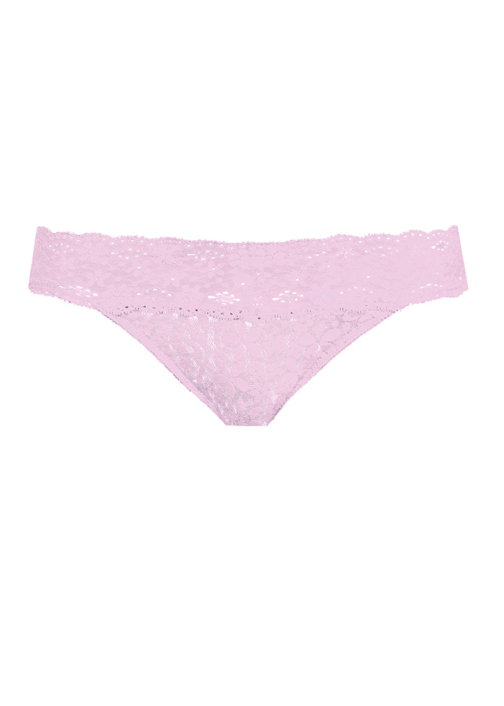 Showcasing all-over Helanca floral lace in a feminine pink shade, Halo Lace is a true lingerie drawer essential. The Bikini Brief offers a staple style with a wide stretch waistband for a comfortable, everyday fit in sizes S - XL.