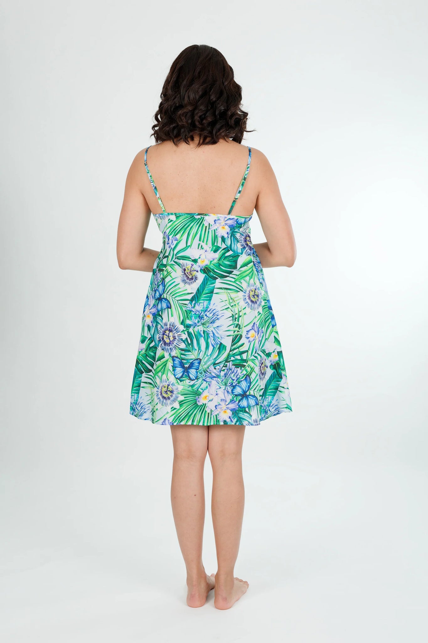 Cute cotton lawn chemise cut on the bias to fit the body perfectly. Made in beautiful summer floral prints. Thin adjustable straps finish the dress off.