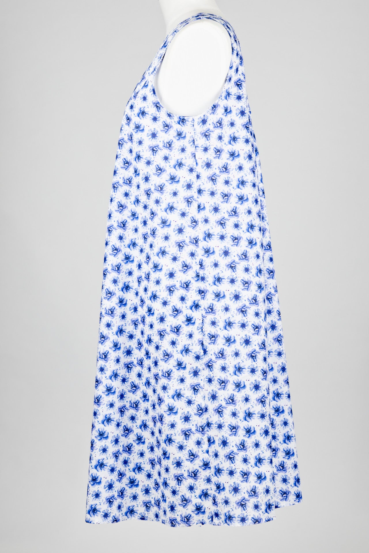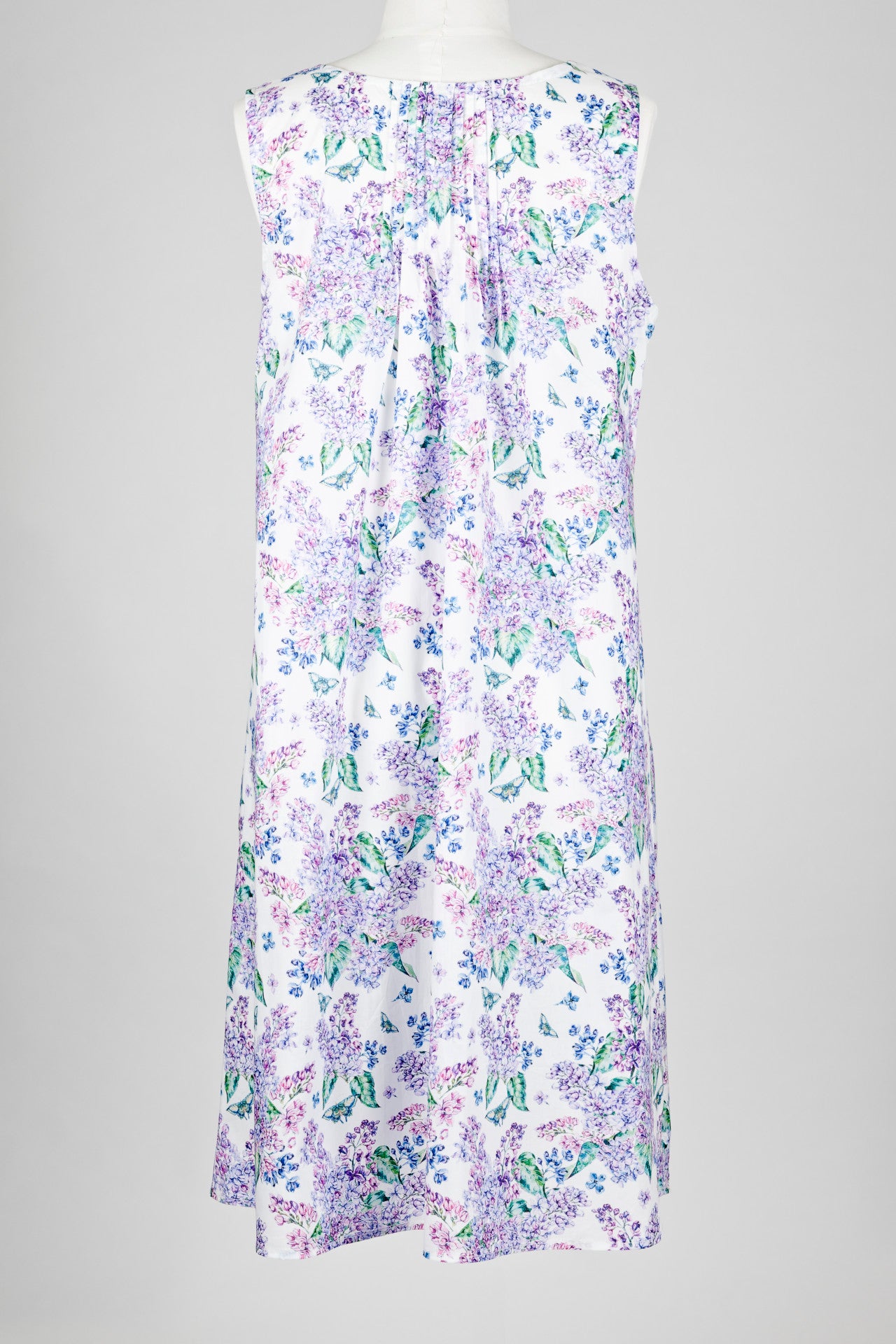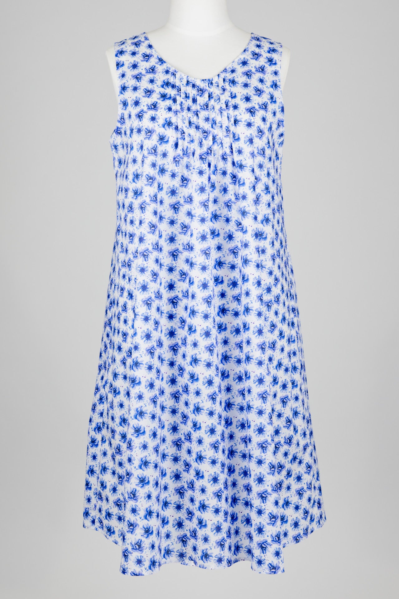 Timeless and elegant sleeveless cotton nightdress with pin pleats at the front and back. Rounded neckline with a thin cotton lace and finished off with a small white bow or a delicate ribbon rose.